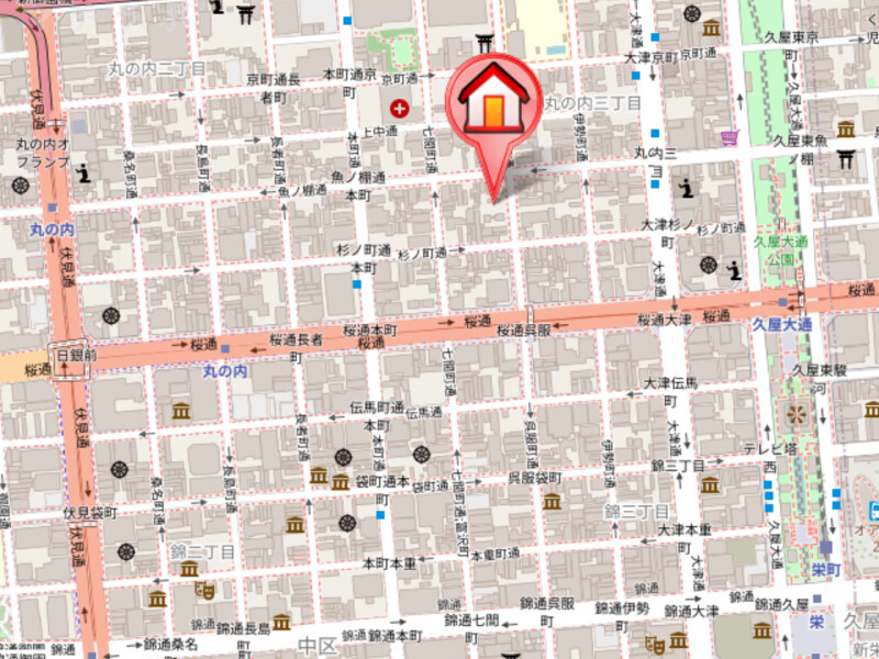 | 交通 | 名古屋市営名城線/久屋大通駅 徒歩6分 名古屋市営桜通線/久屋大通駅 徒歩6分 名古屋市営桜通線/丸の内駅 徒歩7分 名古屋市営鶴舞線/丸の内駅 徒歩8分 |
