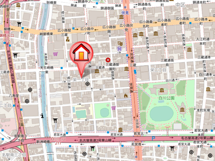| 交通 | 名古屋市営東山線/伏見駅 徒歩6分 名古屋市営鶴舞線/伏見駅 徒歩6分 名古屋市営鶴舞線/大須観音駅 徒歩8分 名古屋市営桜通線/丸の内駅 徒歩11分 |